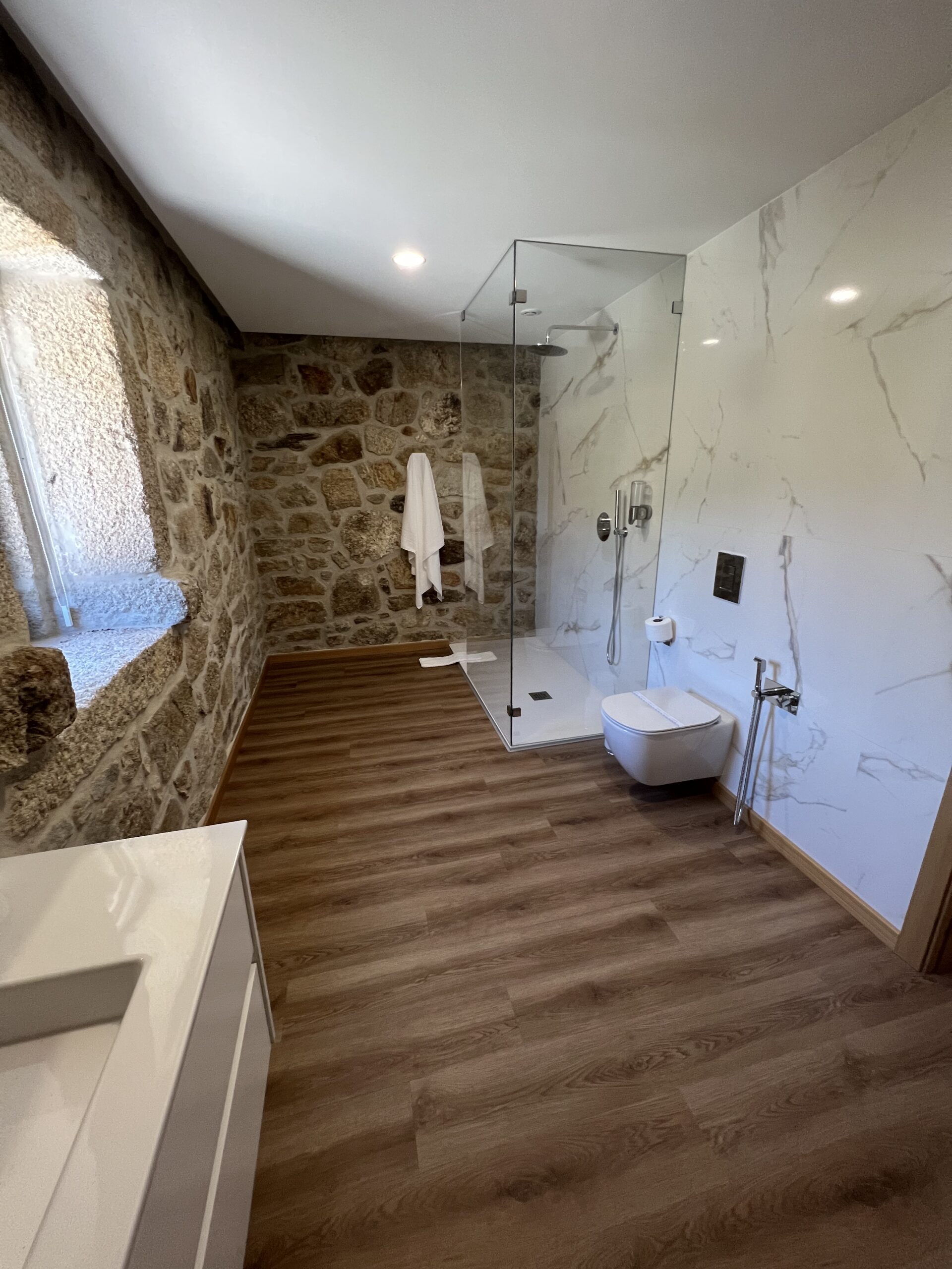 Casa típica Portuguesa restaurada com projeto de turismo rural, com cozinha totalmente equipada, salão, 4 quartos (todos suite), piscina, terraço com churrasqueira, todos os espaços climatizados com internet com ligação por fibra ótica.